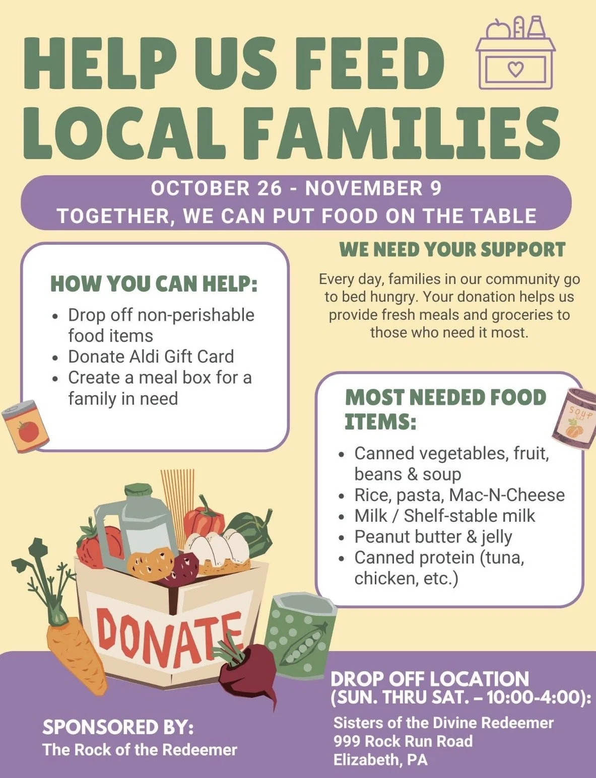 Join us this spring as we prepare for our annual Easter Basket Drive. Details on how to donate, volunteer, or get involved will be shared soon.